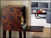 Material - Makassar-Ebenholz, vernickeltes Messing, Leder und Glas