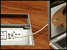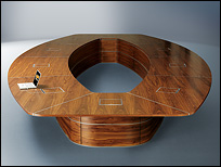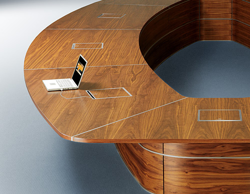 Konferenztisch aus Aluminium, Kunststoff und Holz