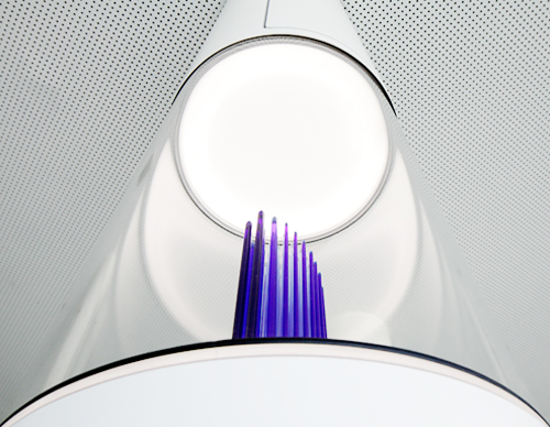 MaterialGlaszylinder: 'DURAN’-BososilikatglasröhreSäule: Vollaluminiumröhre, Aluminium-PlattenwerkstoffeOberfläche: Klavierlack.